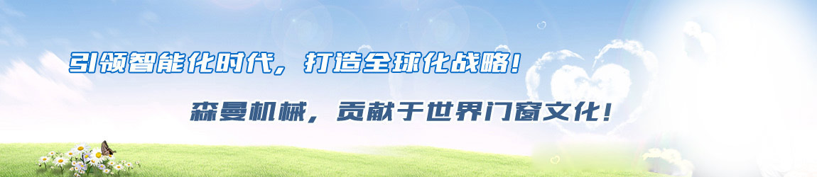 “森曼機(jī)械”作為全球門窗設(shè)備供應(yīng)商,本著"seaman"精神,勇立潮頭,拼搏創(chuàng)新,以爭做行業(yè)為目標(biāo),在行業(yè)前輩發(fā)展的基礎(chǔ)上,努力學(xué)習(xí),積極進(jìn)取。目前公司產(chǎn)品涵蓋塑料門窗設(shè)備、鋁合金門窗設(shè)備、鋁幕墻設(shè)備、鋁木復(fù)合門窗設(shè)備及中空玻璃設(shè)備五大種類,近百個品種。公司產(chǎn)品銷售至全國各地及東南亞、非洲、東歐、北美等幾十個國家和地區(qū)。在這個競爭激烈的年代,我們正努力使我們的產(chǎn)品!